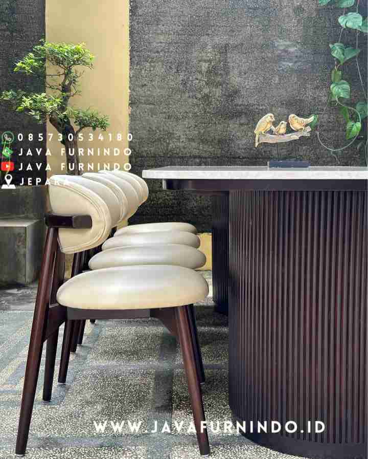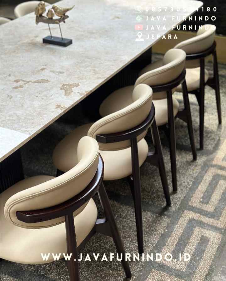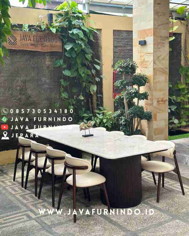 • Dining Set 220cm • Material: Kayu jati grade A & Top Marmer Cream/Carara • Size : 220 x 100 cm • Furnish: Salak impra • Fabric: Carviero